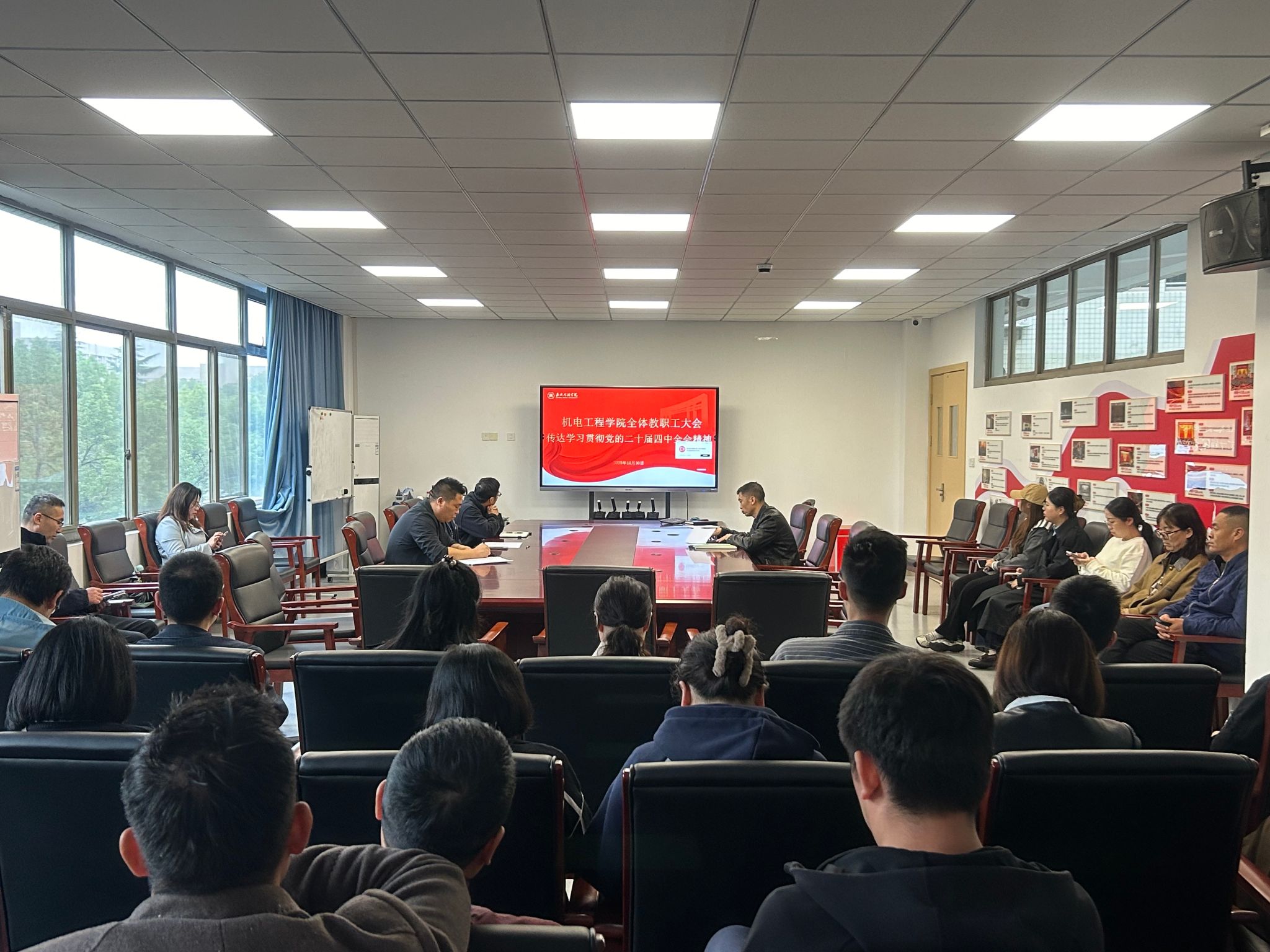 10月30日下午,机电工程学院在学院8333会议室召开专题会议,传达学习贯彻党的二十届四中全会精神。全体教职工参加会议。