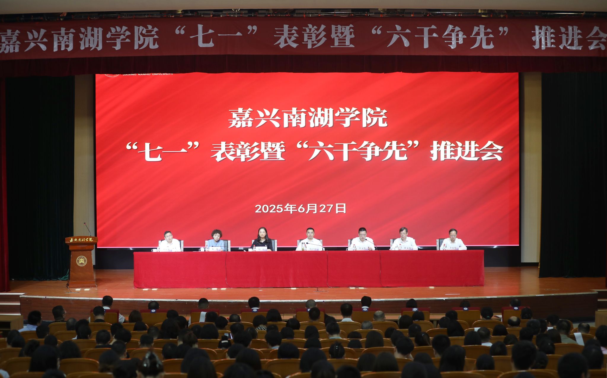 6月27日上午,学校召开“七一”表彰暨“六干争先”推进会,庆祝中国共产党成立104周年,表彰先进典型,进一步增强“六干争先”抓落实的责任感、自觉性和行动力,扎实推动学校“三个大学”建设更高质量发展。在家校领导出席,会议由校长、党委副书记贾文胜主持。
