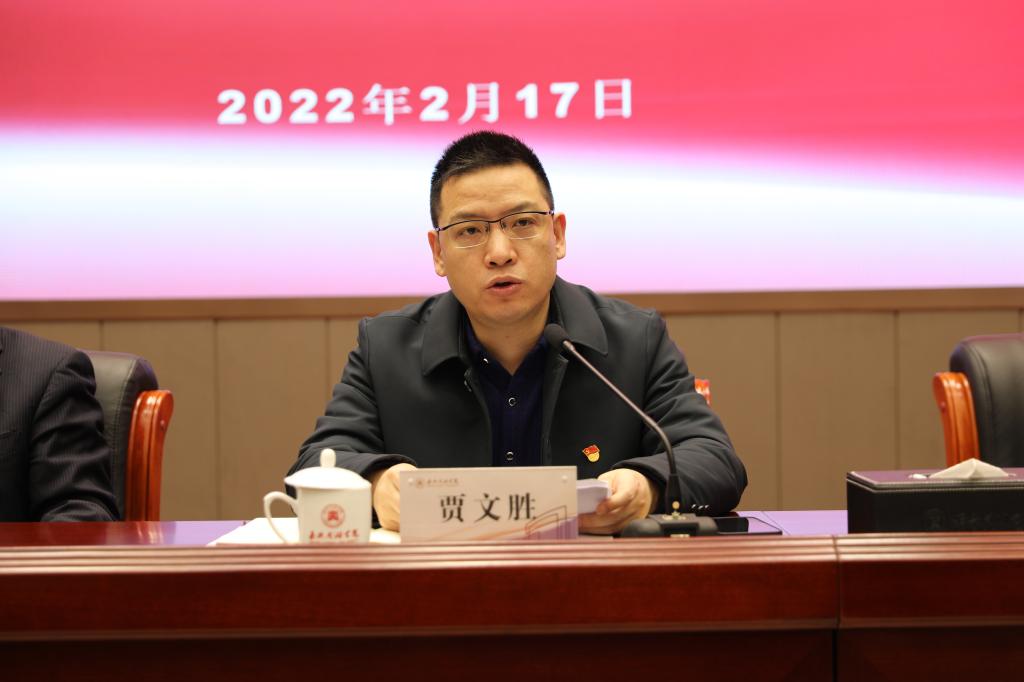 2月17日上午,学校在行政楼报告厅召开党史学习教育总结会议,深入学习贯彻习近平总书记重要指示精神和中央、省市党史学习教育总结会议精神,认真总结学校党史学习教育开展情况,深入学习贯彻党的十九届六中全会精神,巩固深化党史学习教育成果,研究部署学校党史学习教育常态化长效化工作,教育引导广大党员干部和师生员工踔厉奋发、笃行不怠,奋力谱写办好“红色大学”“城市大学”“产业伙伴型大学”的崭新篇章。校领导盛付祥、贾文胜、郭坚刚、胡文蔚、袁志明、蒋文波、朱蓉、李泉明、陈加明出席会议,校党委书记盛付祥作总结讲话,会议由校长贾文胜主持。