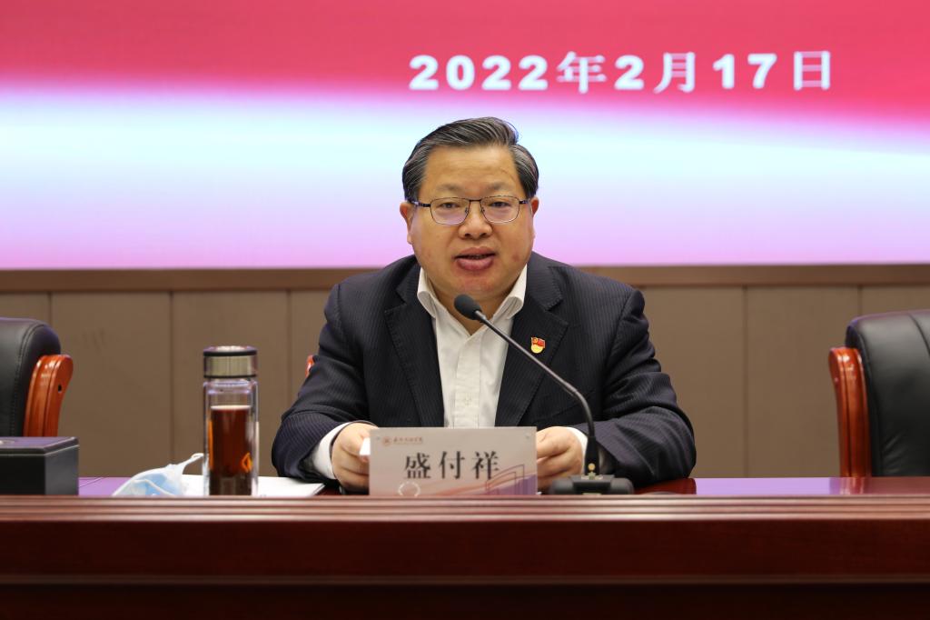 盛付祥从“提高政治站位,深刻领会中央和省市党史学习教育总结会议精神;全面系统总结,从党史学习教育中不断汲取前行力量;坚持常态长效,持续巩固拓展党史学习教育成果”三个方面,全面总结了学校党史学习教育的进展成效和经验做法,并对下一步工作提出了明确要求。他强调,全校各级党组织要认真学习贯彻习近平总书记重要指示要求和中央总结会议精神,自觉把思想和行动统一到以习近平同志为核心的党中央决策部署上来,主动对标省委“六个学深悟透”、“六个健全”和市委“四个始终”的目标要求,推动党史学习教育成效持续显现、发挥作用。广大党员干部要更好地从党的百年奋斗重大成就和历史经验中汲取智慧力量,为推动新时代学校各项事业高质量发展不懈奋斗。