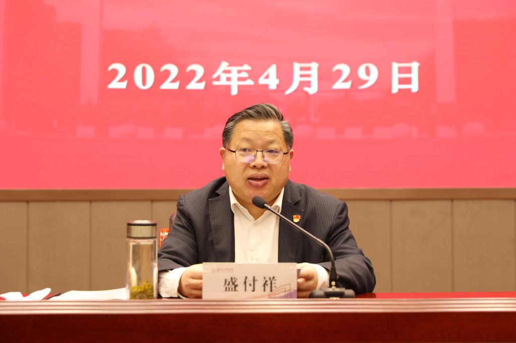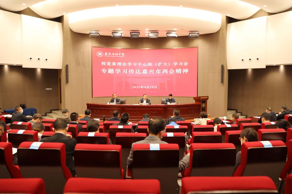 4月29日下午,嘉兴市政协副主席、校党委书记盛付祥主持召开校党委理论学习中心组(扩大)学习会,专题学习嘉兴市两会精神。校党委理论学习中心组全体成员、全体中层干部参加会议。