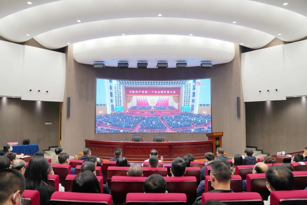 10月16日上午,中国共产党第二十次全国代表大会在北京人民大会堂开幕,习近平总书记代表第十九届中央委员会向大会作报告。在行政楼一楼报告厅的学校主会场,校领导盛付祥、贾文胜、郭坚刚、胡文蔚、袁志明、蒋文波、朱蓉、陈加明及近150名中层干部和机关党员集中收看了开幕会盛况。各二级学院、学生组织也通过设立分会场及网络、电视、广播等形式组织师生收看收听了开幕会。