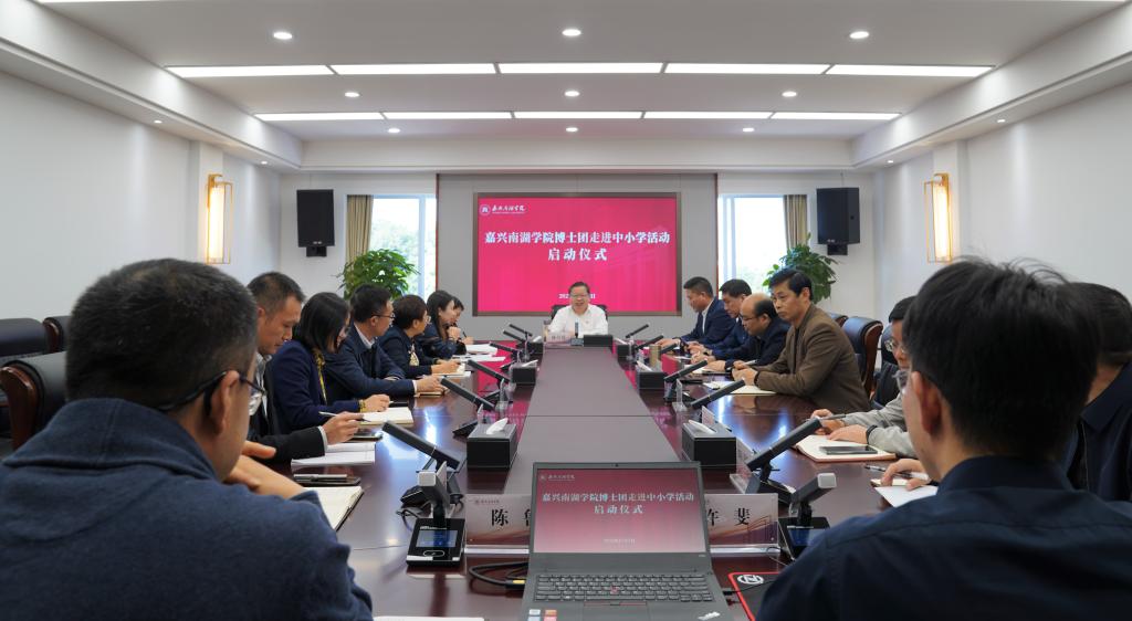 11月7日下午,学校在行政楼416会议室举行博士团走进中小学活动启动仪式。嘉兴市政协副主席、校党委书记盛付祥,副校长陈加明出席仪式。党委(校长)办公室、宣传部、学工部、继续教育学院、各二级学院负责人及博士代表参加启动仪式。