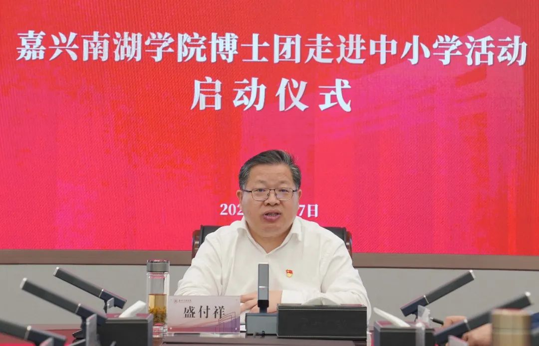 盛付祥代表学校党委向在博士团走进中小学活动中付出辛苦努力的老师及参与活动的博士表示感谢。他强调,博士团走进中小学活动很有意义。这是推进学校“城市大学”建设的好抓手,是讲好南湖故事的好机会,是传播新思想新知识的好途径,也是施展真才实学的好舞台。要把博士团走进中小学活动办实办好,办成品牌。当好党的二十大精神的宣讲员,当好传道受业解惑的大先生,当好学校良好形象的代言人,当好中小学生好学向上、服务社会、报效祖国的好榜样。全力支持好博士团走进中小学活动深入开展。要加强组织领导,完善政策支持,注重工作结合,强化服务保障,做好活动宣传。