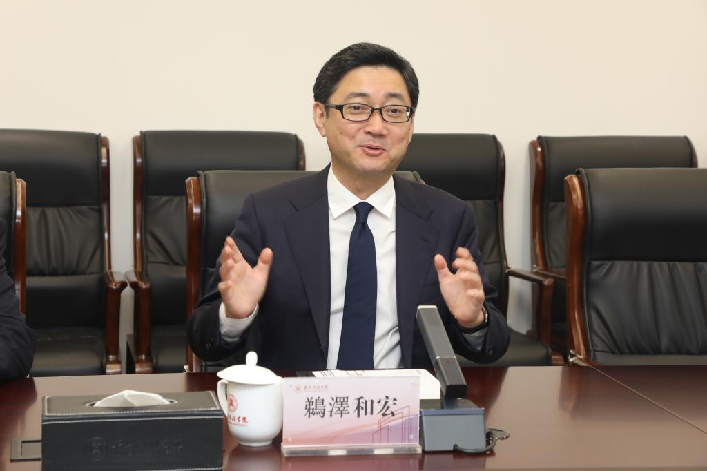 鵜澤和宏介绍了日本东亚大学的专业建设、教学资源、优势学科、国际教育水平等情况。双方就两校之间开展学生短期交换、“2+2”双学位项目、“3+1”学分项目等方面深入交换意见,并达成初步合作意向。