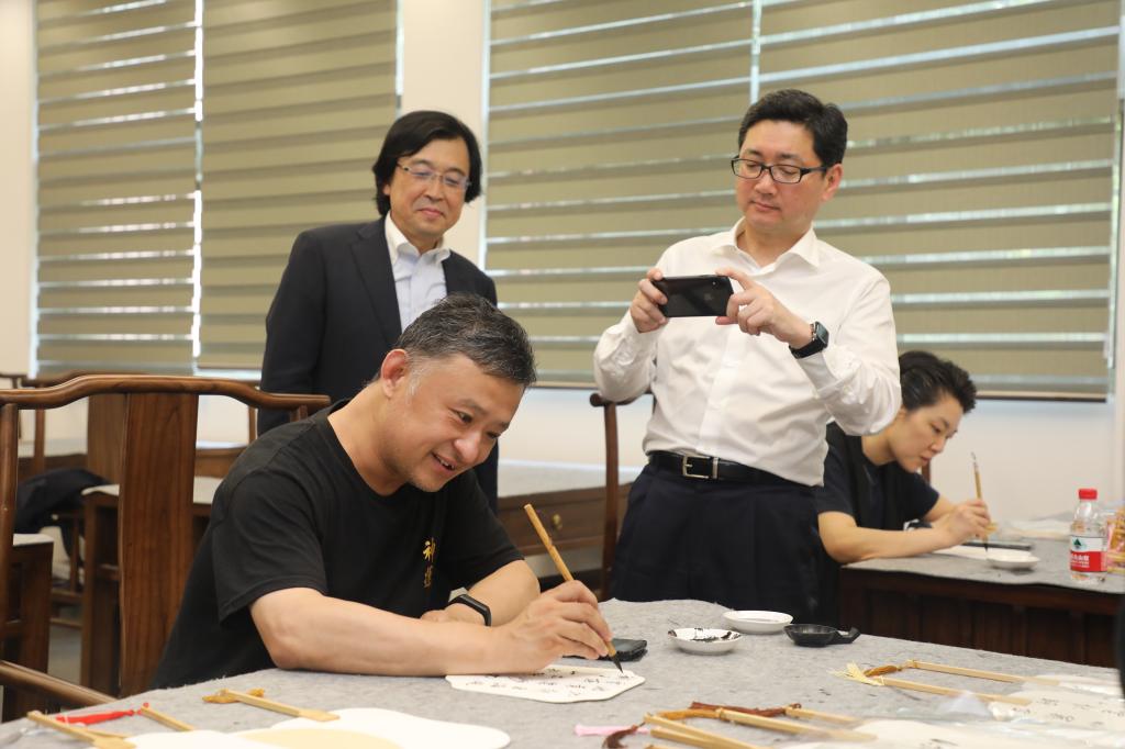 会后,鵜澤和宏一行参加了学校金石书画研究院团扇扇面制作活动,以书画传情,促进中日友好,不仅为两校开展友好合作奠定了基础,更提升了中日两国间的友谊。