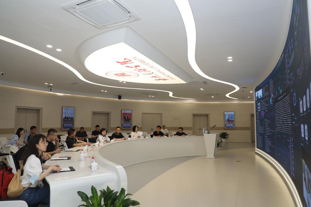 人民日报数字传播有限公司相关人员及学校党委(校长)办公室、宣传部、信息技术中心相关负责人参加交流座谈。