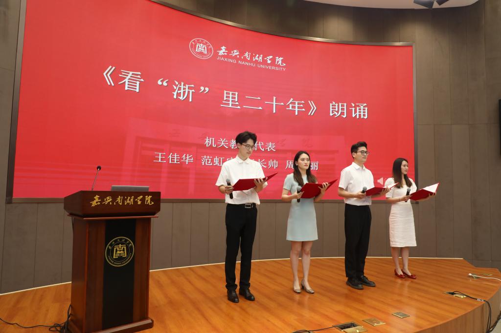 由机关教师代表带来的朗诵节目《看“浙”里二十年》生动讲述了“八八战略”指引下浙江跃上新台阶、嘉兴走上新征途的发展故事。