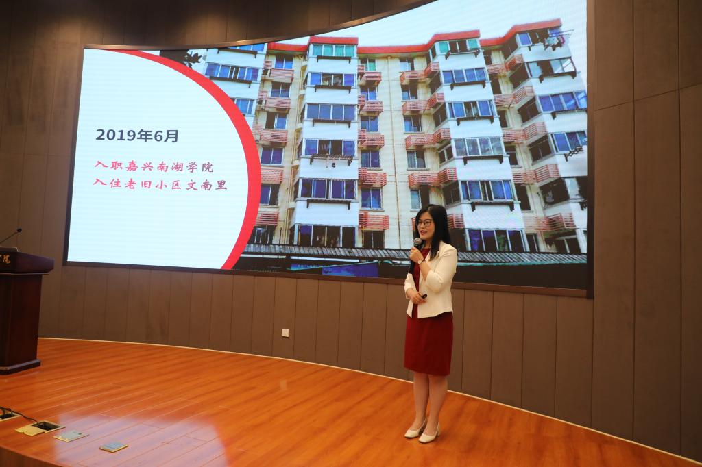 马克思主义学院思政教师徐廉欣的《南湖人追梦新“嘉”园》主题宣讲从入住老旧小区的经历出发,展示了“八八战略”之下嘉兴市老旧小区的蝶变历程。