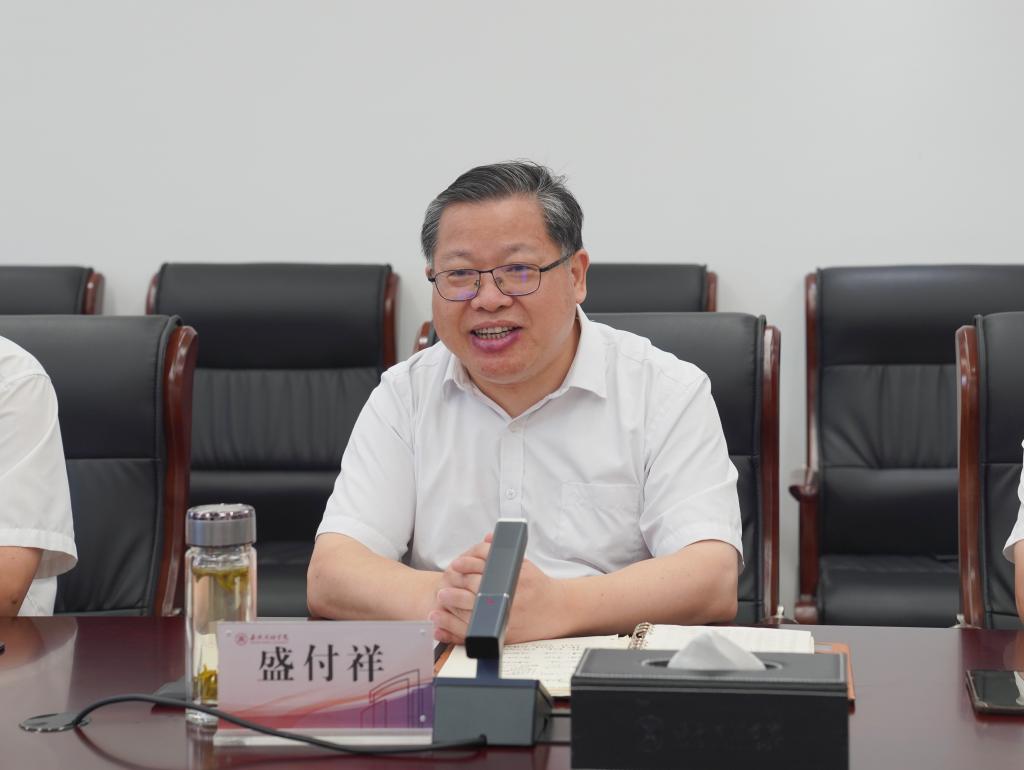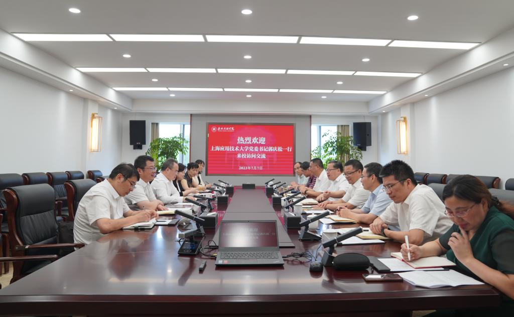 7月7日下午,上海应用技术大学党委书记郭庆松一行来校调研。嘉兴市政协副主席、校党委书记盛付祥出席交流座谈会。