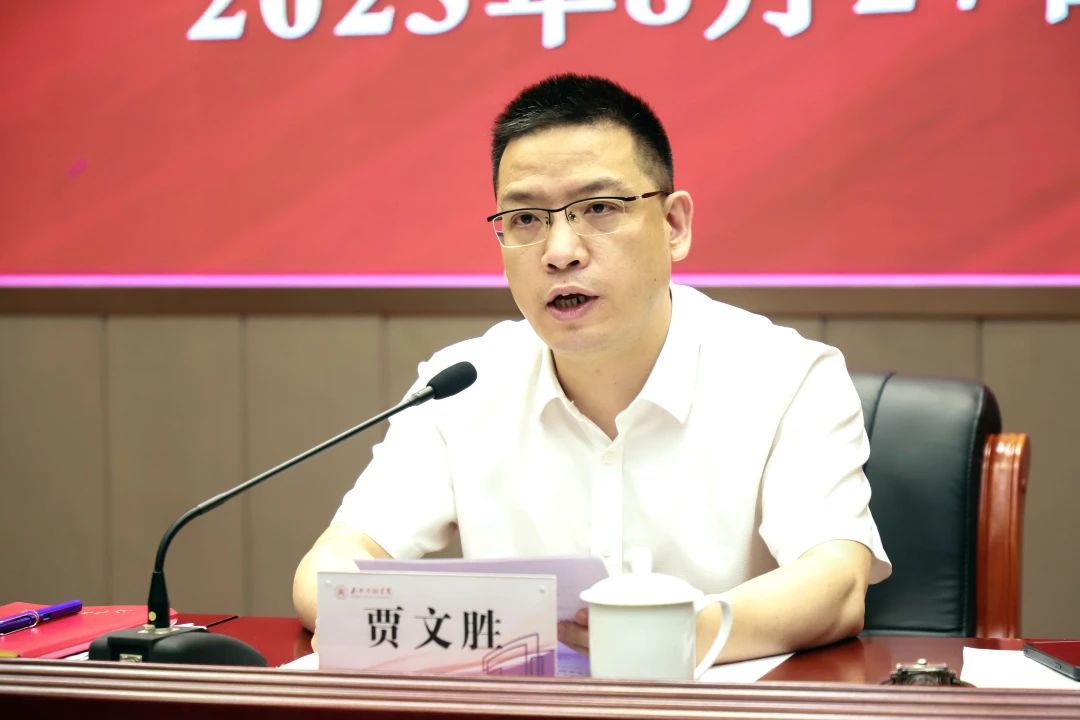 贾文胜就办好此次读书会提出三点要求:一要多思多想,学深悟透。校党委高度重视本次读书会,邀请了众多知名教授、专家来上课,大家务必要在思想上提高认识,增强参加学习培训的主动性和自觉性,合理安排时间,认真学习研讨。二要遵守纪律,严格要求。大家要严格遵守读书会的纪律要求,树立良好的学风,争做认真学习的标杆、遵守纪律的榜样,共同营造良好学习氛围,确保学有所获、思有所悟、研有所得。三要指导实践,推动工作。大家在认真开展理论学习的基础上,要统筹安排好新学期工作,做到理论学习与中心工作有机融合、相互促进,切实把学习成果更好转化为推动学校改革发展的行动自觉,加快推进学校应用型本科高校建设。