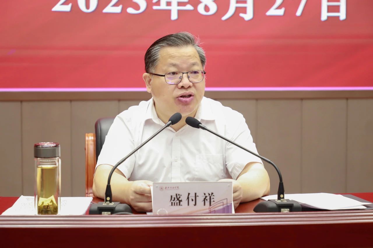 盛付祥做题为《解放思想 创新实干 为打造特色鲜明、国内一流应用型大学而共同努力》的主题报告,从学校的现状、当前的形势、下步的任务和队伍的建设等四个方面作了详细阐述。