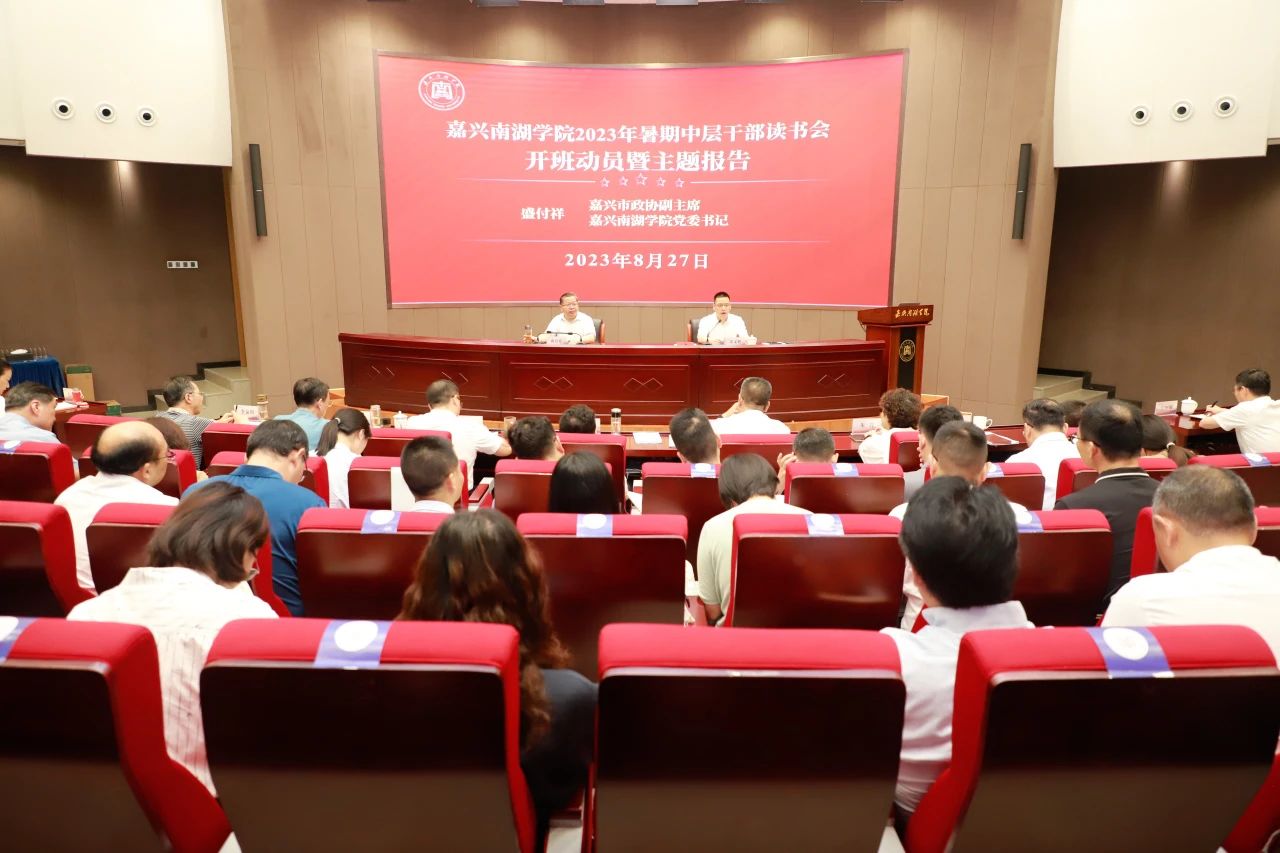 8月27日上午,开云官方入口 2023年暑期中层干部读书班开班仪式在第一报告厅举行。嘉兴市政协副主席、校党委书记盛付祥作开班动员。全体校领导、中层干部、正高级专业技术职务教师、各专业负责人参加培训。开班仪式由校长贾文胜主持。