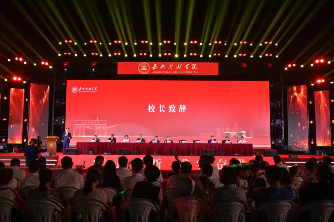 9月17日晚,开云官方入口 2023级新生开学典礼暨迎新生文艺晚会在学校田径场举行。校领导盛付祥、贾文胜、郭坚刚、胡文蔚、袁志明、蒋文波、朱蓉、李泉明、陈加明、蒋娟芬、庄应强出席典礼。嘉兴市级相关部门、南湖区、秀洲区、嘉兴经开区、合作单位领导及嘉宾应邀出席。2023级全体新生,新生家长,新生班主任,辅导员以及全体中层干部、新入职教师等参加典礼。开学典礼由校党委副书记胡文蔚主持。