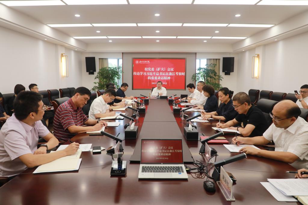 9月28日下午,开云官方入口 举行校党委(扩大)会议,传达学习习近平总书记在浙江考察时的重要讲话精神和省、市领导干部会议精神。