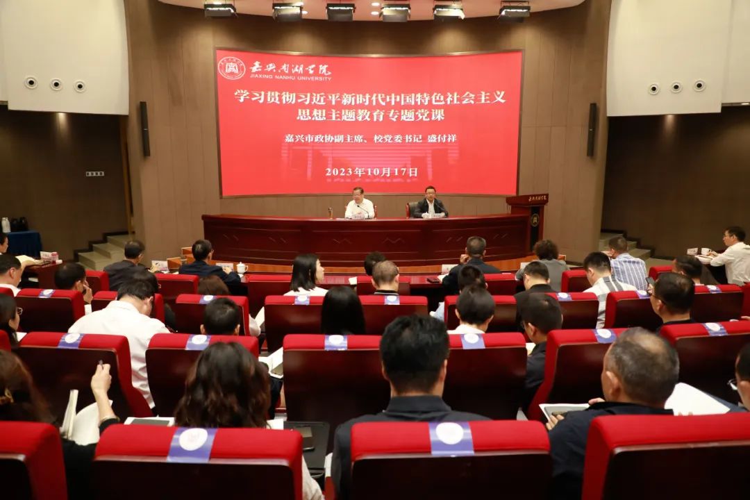 根据主题教育安排,10月17日上午,嘉兴市政协副主席、校党委书记、校党委主题教育领导小组组长盛付祥在学校主题教育读书班上以《把握大局大势 勇于担当作为 奋力走好开云官方入口 应用型发展之路》为题作专题党课。校领导班子成员应邀出席,全体中层干部聆听党课。报告会由校党委副书记胡文蔚主持。
