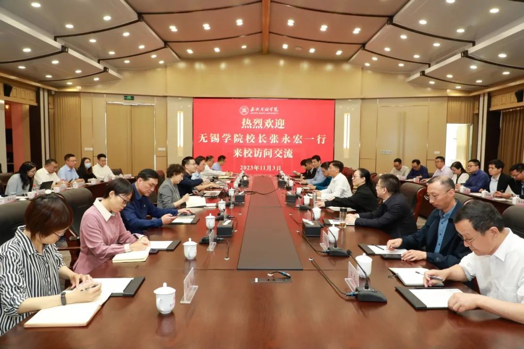 张永宏对我校的热情接待表示感谢。他介绍了无锡学院转设、招生和对外合作等基本情况,并就办学体系、人才引进、学科专业布局、校园品牌建设等方面进行了交流。他指出,两校办学各具特色,可互相借鉴之处很多,在人才引进、校企合作等方面理念相通、做法相近,希望双方以此次交流为契机,进一步开展多领域深层次合作。