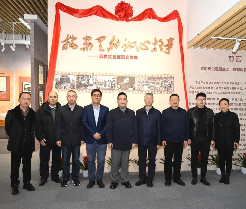 仪式上,贾文胜、李军、胡文蔚、陈雷共同为学校红色档案文献展馆揭幕;随后,全体与会人员参观了展览。