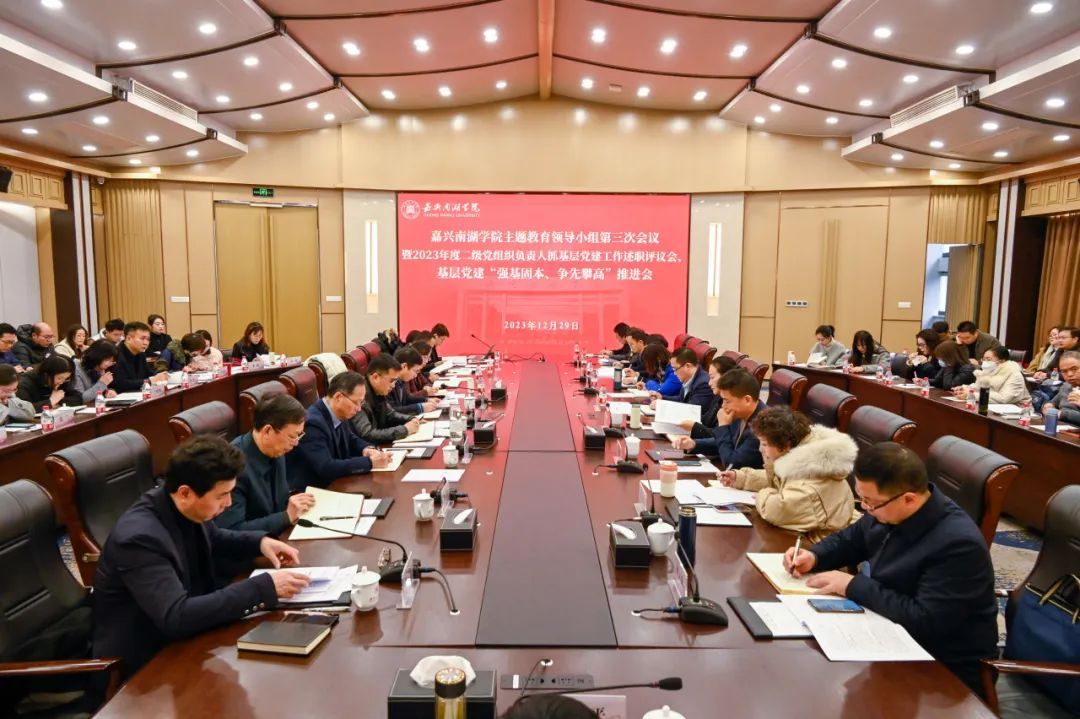 为深入贯彻落实习近平新时代中国特色社会主义思想和党的二十大精神,落实全面从严治党主体责任,不断加强和改进学校党的建设工作,扎实推进主题教育,推动提升学校基层党建工作,12月29日上午,学校召开主题教育领导小组第三次会议暨2023年度二级党组织负责人抓基层党建工作述职评议会、基层党建“强基固本、争先攀高”推进会。全体在校校领导,各二级党组织书记、副书记,学校党务部门、群团组织主要负责人,主题教育领导小组办公室全体成员,全体师生党支部书记参加会议。