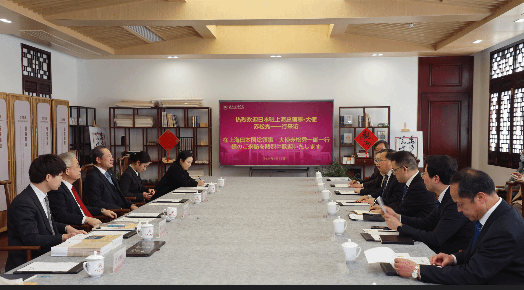 1月15日下午,日本驻上海总领事馆总领事·大使赤松秀一、日本著名书法家师村妙石一行来到我校交流访问,嘉兴市政协副主席盛付祥、嘉兴市人民政府外事办公室主任沈文平陪同。校长贾文胜、校党委副书记郭坚刚及副校长蒋文波等出席座谈会。