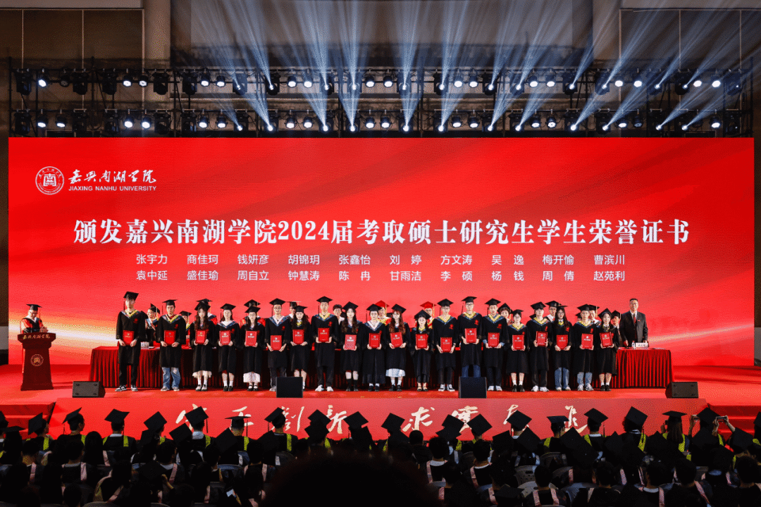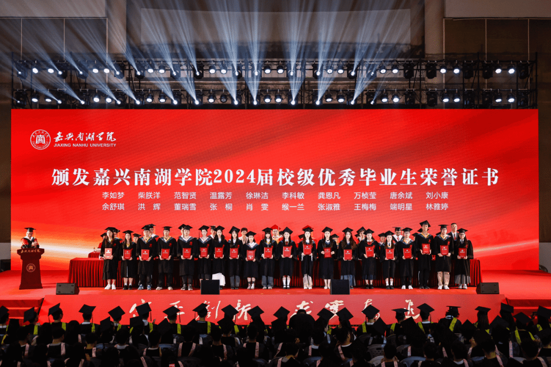 全体出席校领导为获得表彰的学生代表颁发荣誉证书,为2024届毕业生代表颁发毕业证书,为校友联络员颁发聘书。倪沪平为“南湖证书”获得者颁发证书。