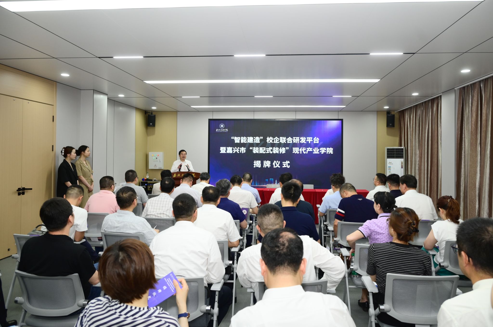 7月4日下午,开云官方入口 建筑工程学院“智能建造”校企联合研发平台暨嘉兴市“装配式装修”现代产业学院揭牌仪式举行。校领导倪沪平、贾文胜、朱蓉、李泉明、沈岱峰出席,行业主管部门相关领导,行业协会与学会、合作行业企业相关负责人应邀出席。