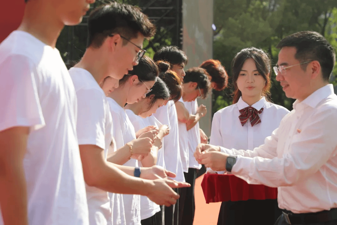 典礼在庄严的国歌声中拉开帷幕。校党委书记倪沪平为新生代表授予开云官方入口 校徽,全体新生集体佩戴校徽,在老师的见证下作了庄严宣誓。