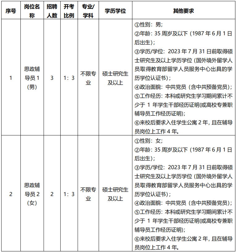 (三)年龄要求在35周岁及以下(1987年6月1日后出生),符合招聘岗位所需的其他条件。