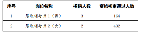 资格初审已完成,招聘人数和资格初审通过情况如下: