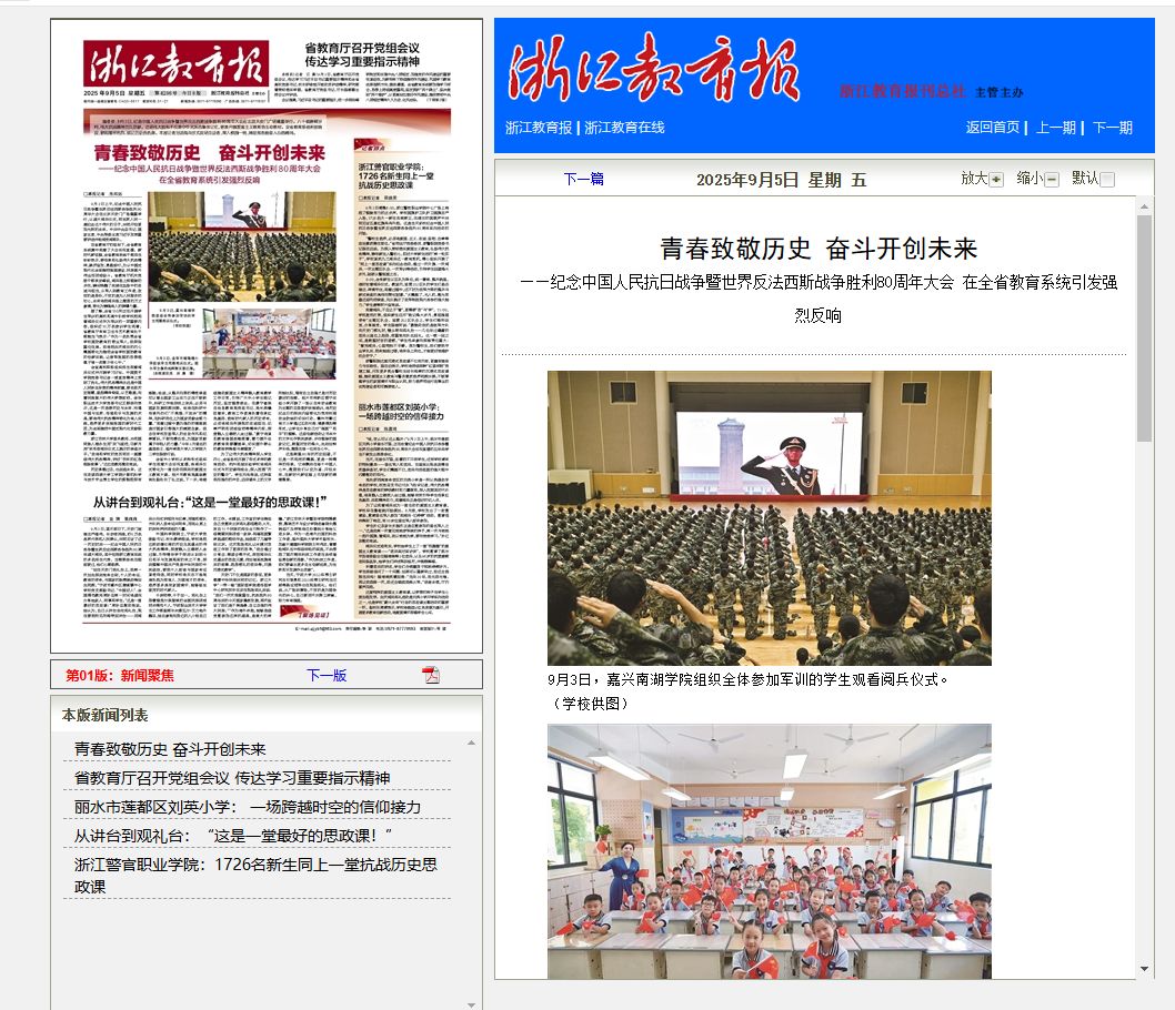 浙江教育报:开云官方入口 组织全体参加军训的学生观看阅兵仪式