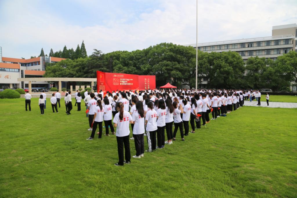 庆祝中国共产党成立100周年升国旗仪式暨党员集中宣誓仪式在学校文化广场举行。该校领导班子、中层干部、各级党组织书记、师生党员代表和全体预备党员,近400人参加仪式。