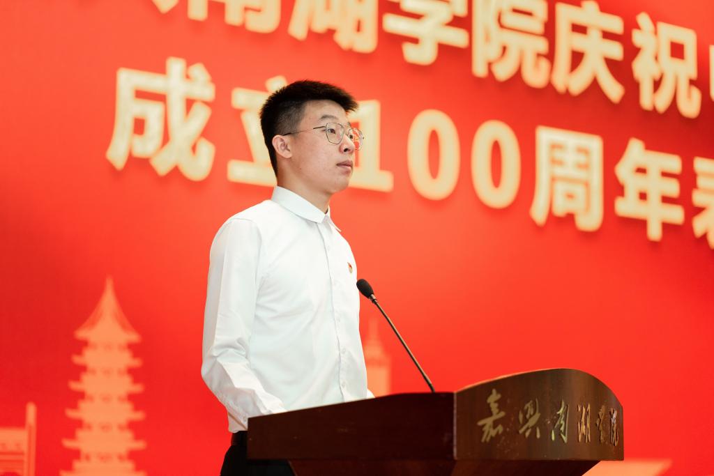 嘉兴市优秀共产党员刘勇、校优秀共产党员王辰昱、校优秀党务工作者武瑛、嘉兴市先进基层党组织人文系教工党支部李柽杨、学生党员代表陈逸轩作交流发言。