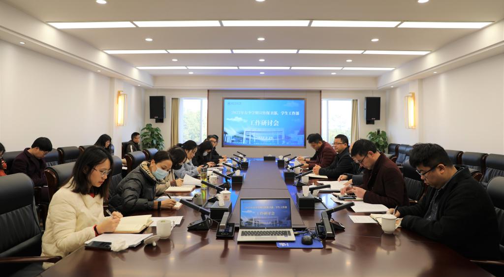 2月21日,宣传保卫部、学生工作部在行政楼416会议室召开新学期工作研讨会,简要总结去年工作,研究部署2022年工作,对具体事项进行探讨。校党委副书记胡文蔚出席会议,宣传保卫部、学生工作部全体人员参加会议。会议由学生工作部部长徐进主持。