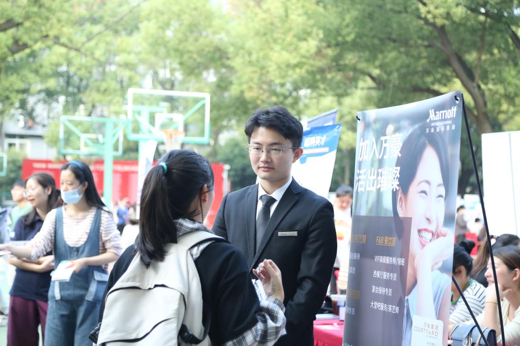 本次参会企业包含国有企业、上市公司、合资企业、外资企业等优质企业,共计298家,提供岗位数量6000余个,涵盖财务、营销、机械、外贸、人力、电气、设计、法律、土木、环境、化学、材料、计算机等专业,为毕业生提供多方位、多层次、多样化选择。室外招聘会如火如荼地开展,同时,教学楼里也诚心热情不断,多家用人单位在教室开展宣讲活动,走近同学,宣传企业,深入交流。这是一场企业和人才的“双向奔赴”。