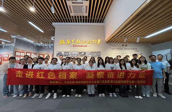 为进一步增强学习贯彻《中国共产党纪律处分条例》,深化党建联建,促进师生交流,发挥党建引领作用,6月7日上午,机关第二、第三党支部联合商贸管理学院学生第二党支部、现代金融学院学生第一党支部开展“走进红色档案、凝聚奋进力量”主题党日活动。
